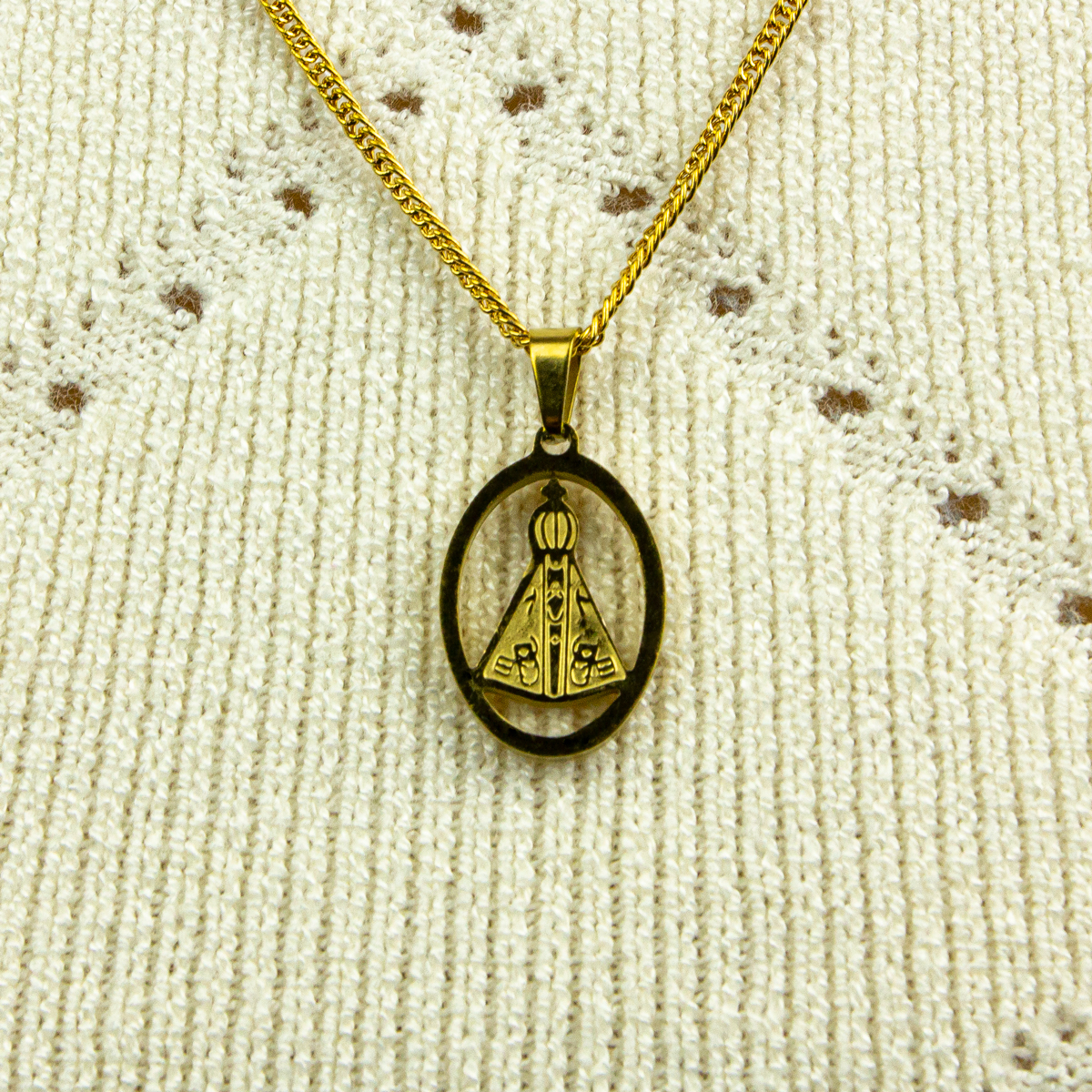 Pingente Nossa Senhora Aparecida Aço Inoxidável Dourado