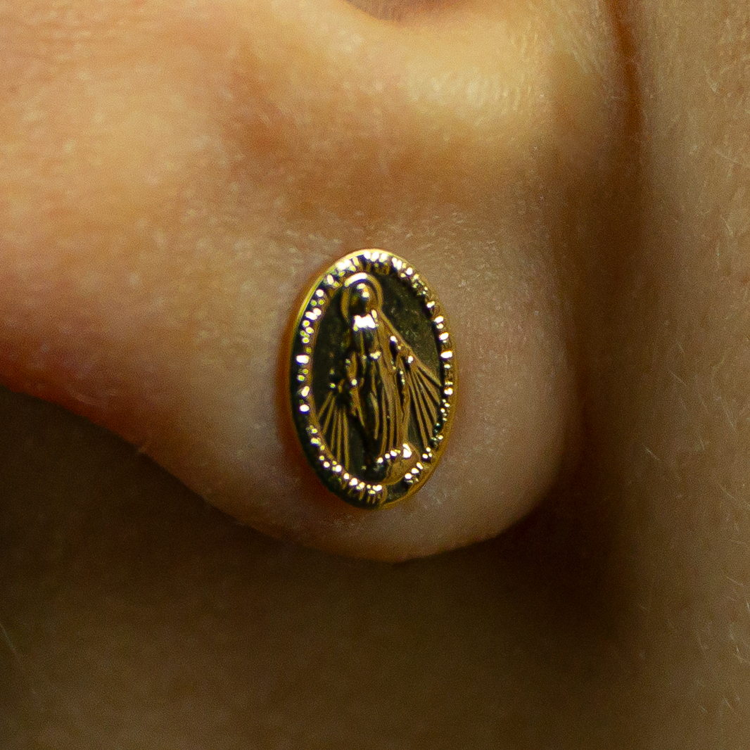 Este delicado brinco semijoia é uma verdadeira expressão de fé e beleza. Com o design inspirado na Medalha Milagrosa de Nossa Senhora das Graças, ele traz a imagem sagrada de Nossa Senhora, que é considerada protetora e intercessora em muitas tradições católicas. O modelo pequeno, discreto e elegante, é perfeito para quem deseja carregar consigo uma proteção divina de forma sutil e sofisticada.
