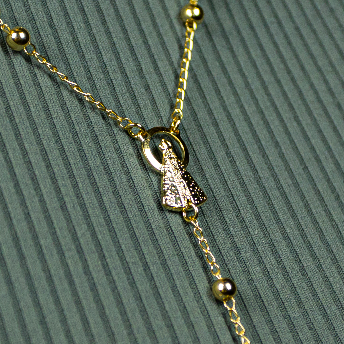Demonstre sua devoção à Padroeira do Brasil com essa linda semijoia. Adquira agora mesmo a Gargantilha do Terço Nossa Senhora Aparecida e leve a fé e a beleza para todos os lugares!