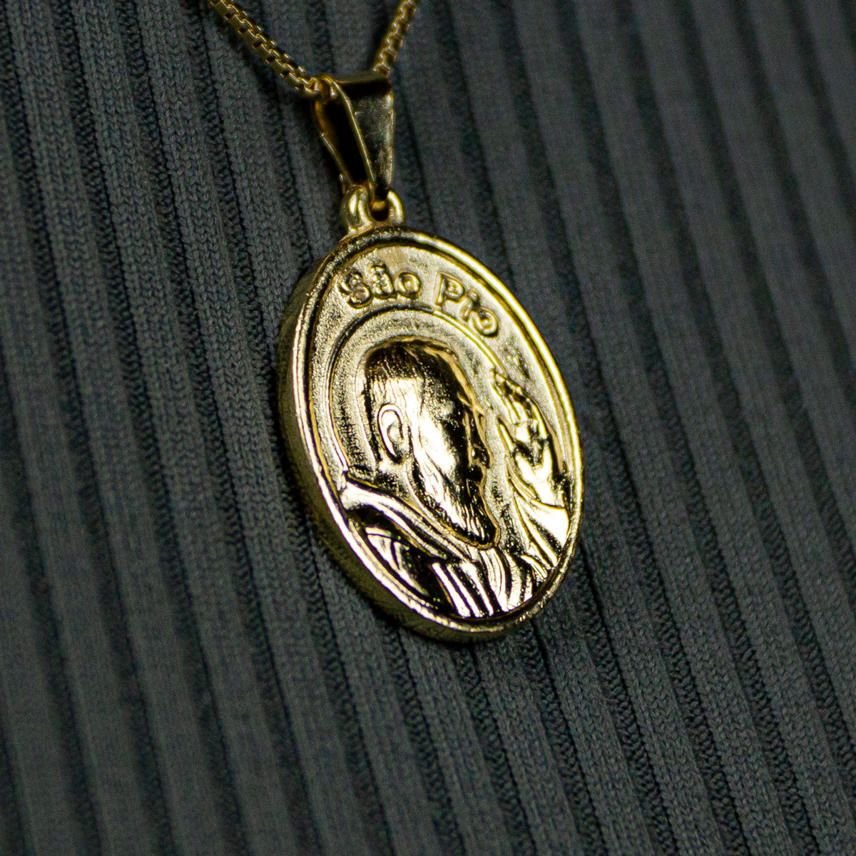 A Medalha de São Padre Pio é uma semijoia repleta de significado e devoção, ideal para quem deseja carregar a proteção e a intercessão do santo no seu cotidiano. Com um design imponente e cheio de detalhes, esta medalha traz a imagem de São Padre Pio, um dos santos mais venerados da Igreja Católica, conhecido por sua fé inabalável, humildade e dons espirituais.